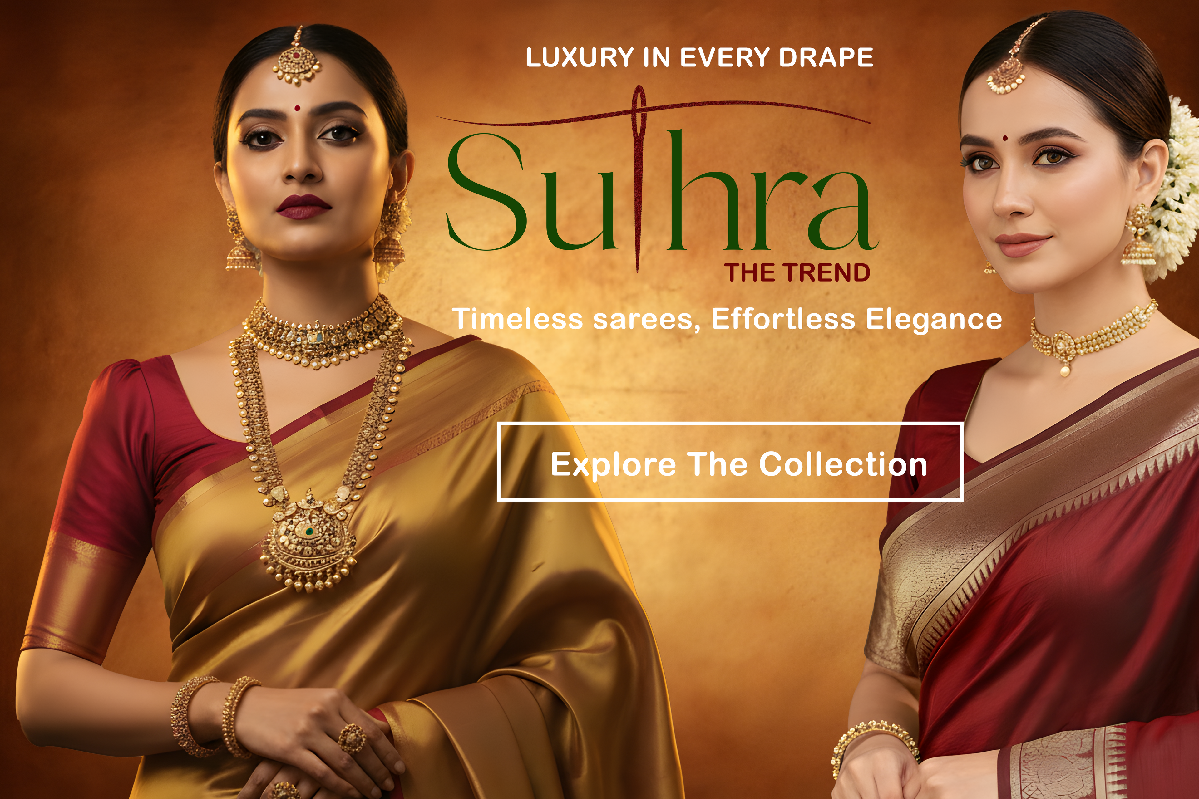 SUTHRA- Suthra Banarasi Golden Zari Work Saree with Golden Zari Work | Elegant Party & Wedding Wear”
